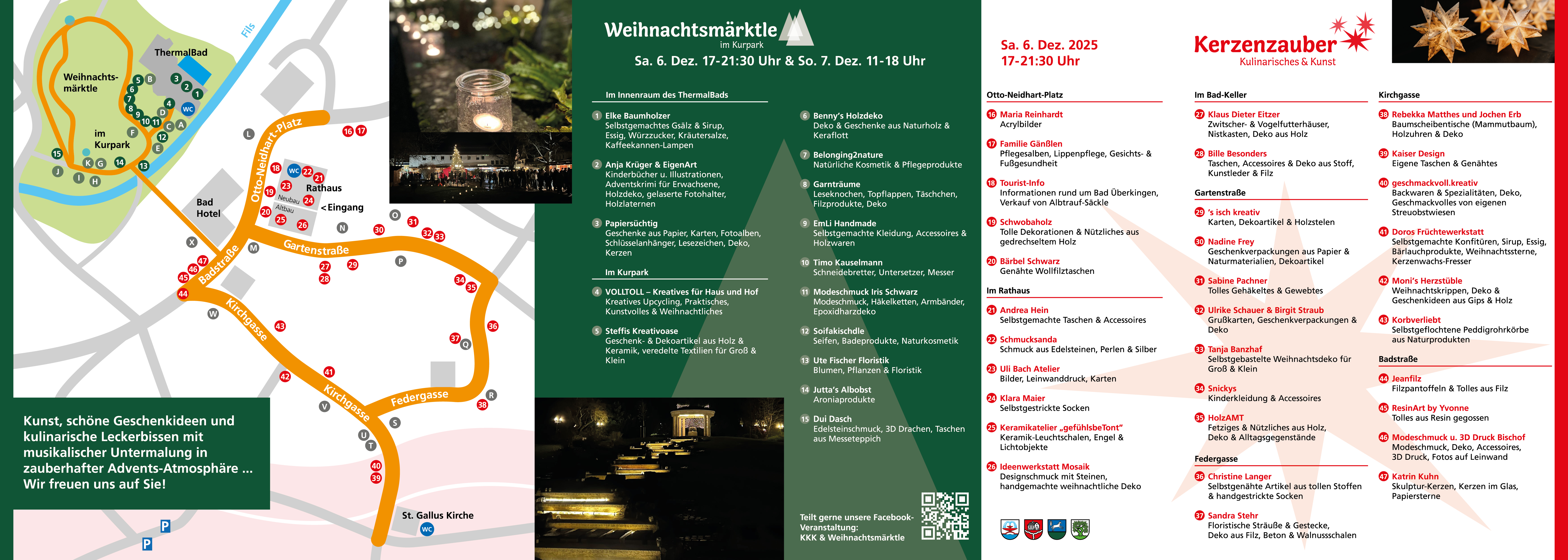 Am Samstag, 6. Dezember 2025 von 17.00 - 21.30 Uhr findet das diesjährige Kerzenzauber, Kulinarisches & Kunst in Bad Überkingen statt.